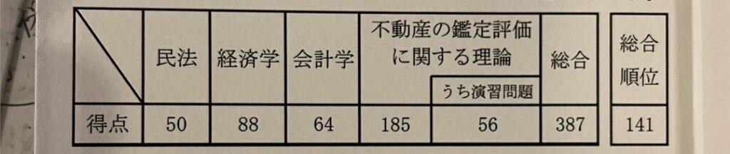 大学受験の勉強経験が総勉強時間短縮につながり、数学の知識のおかげで経済学はあまり勉強しなくても高得点が取れたと思います。民法は苦手でかなり時間を使ったのですが事例分析が苦手で本番まで点数の波がありました。本番は下振れてしまいました。悲しい。