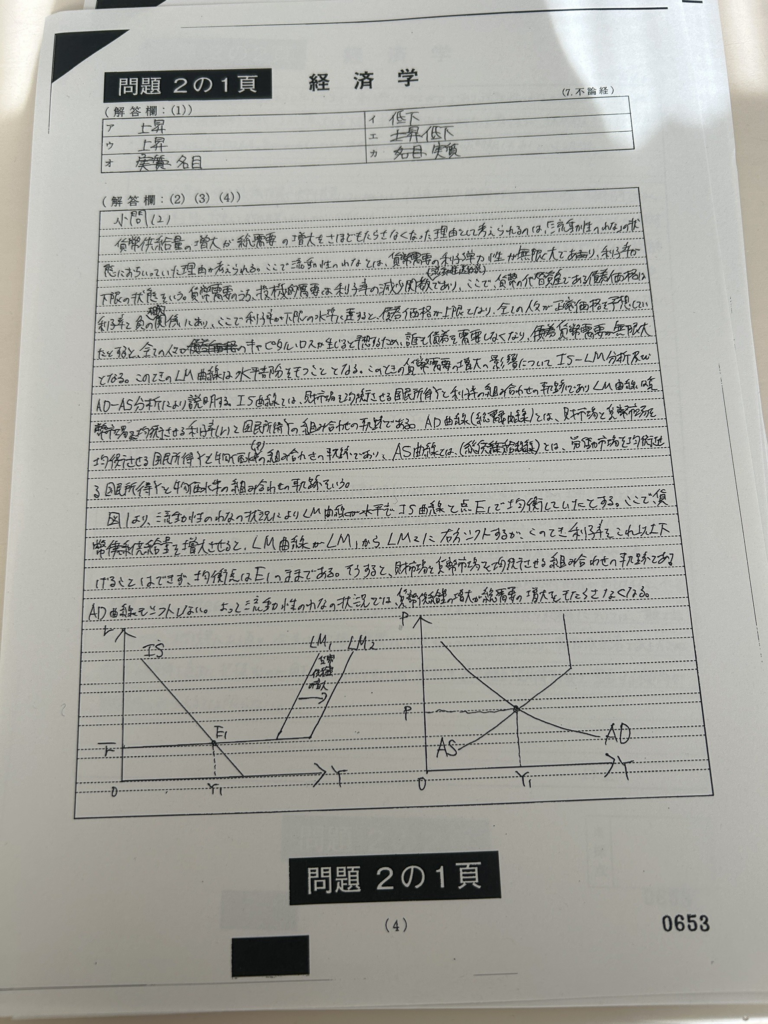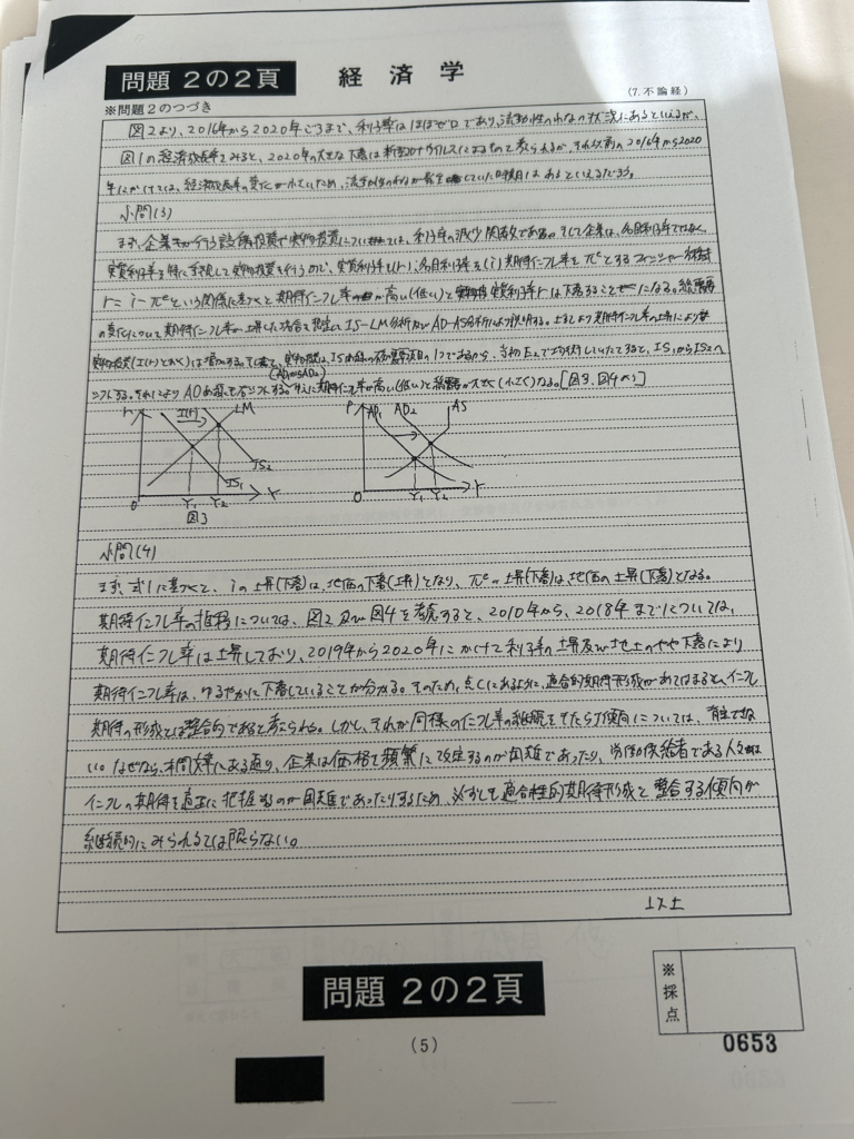 説明やグラフ読み取り問題が中心であったが、答練と同様にフィッシャー方程式やADAS曲線の説明をしっかり行えていると感じる。