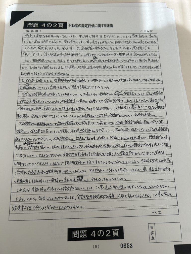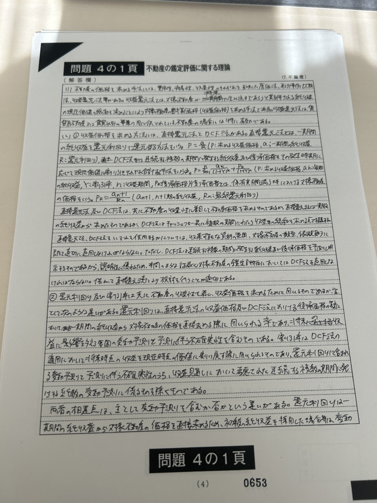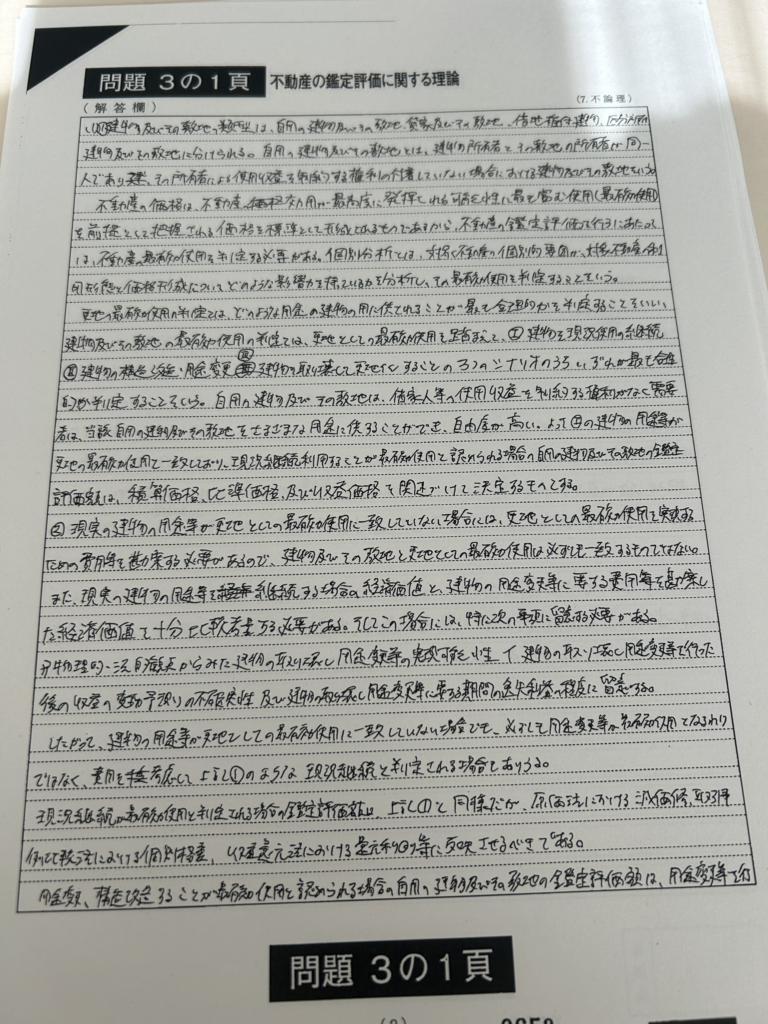 私は緊張で収益還元法の定義や見込み地の定義など普段書けている内容でさえ度忘れしました。