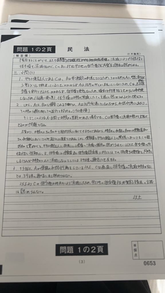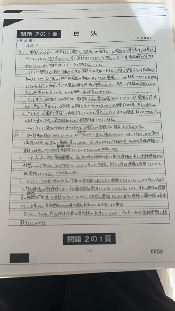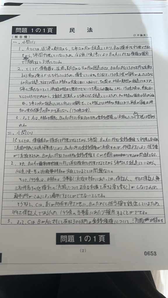 今回のブログでは本試験で3位をとれた私の本試験答案を公開します。