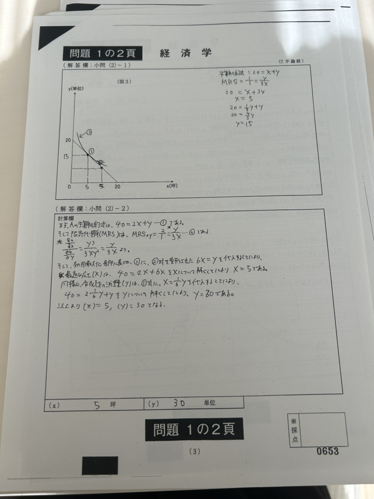 全部載せると量が多くなってしまいますので、2日目の答案のみ公開します!